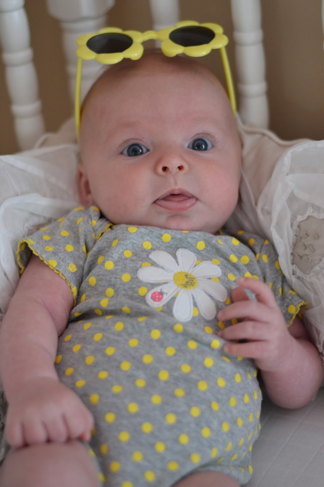 I love snail mail and love when it is filled with cute surprises! A couple weeks ago, my sweet friend Emily mailed Hollis these sunglasses AND a precious little dress. Thank you, Emily for thinking of us...you are so thoughtful! We love these baby sunnies and think they just look darling on her! Baby accessories are just the cutest!